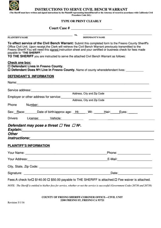 This is a california form and can be use in contra costa local county. California judges may also issue bench warrants in . If you fail to appear for any scheduled court date, the judge may issue a california bench warrant for your arrest. This is always the case if the judge . Arrest warrants and bench warrants do not show up on your california dmv driver's license record.